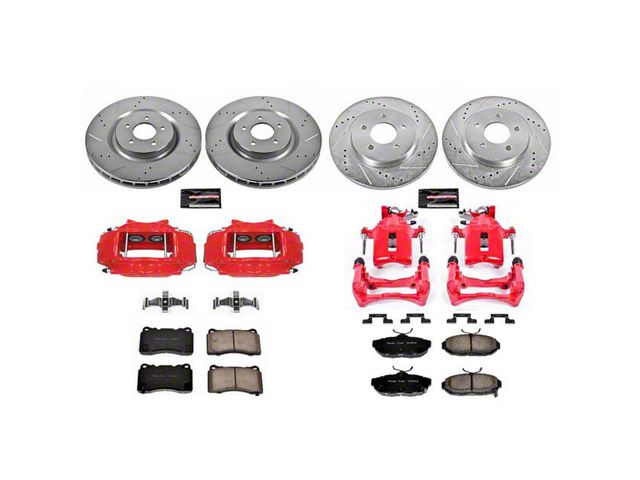 Stop Faster and More Effectively. Slow your Mustang repeatedly without the brake fade you get from stock brake components by adding this Mustang Z23 Evolution brake rotor, pad, and caliper kit. This kit is meant for the front and rear of your vehicle and includes high-quality components that should handle repeated use well.