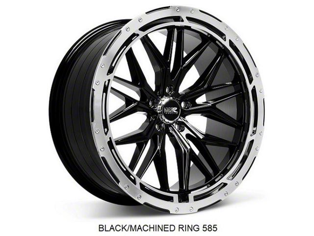The 19x8.5 585 Black with Machined Ring Wheel; 19x8.5; 35mm Offset is completed in a high-quality black finish with a machined ring, which is sure to turn heads. There is a durable clear coat for extra protection and enhanced appearance that can withstand the rigors of the road.