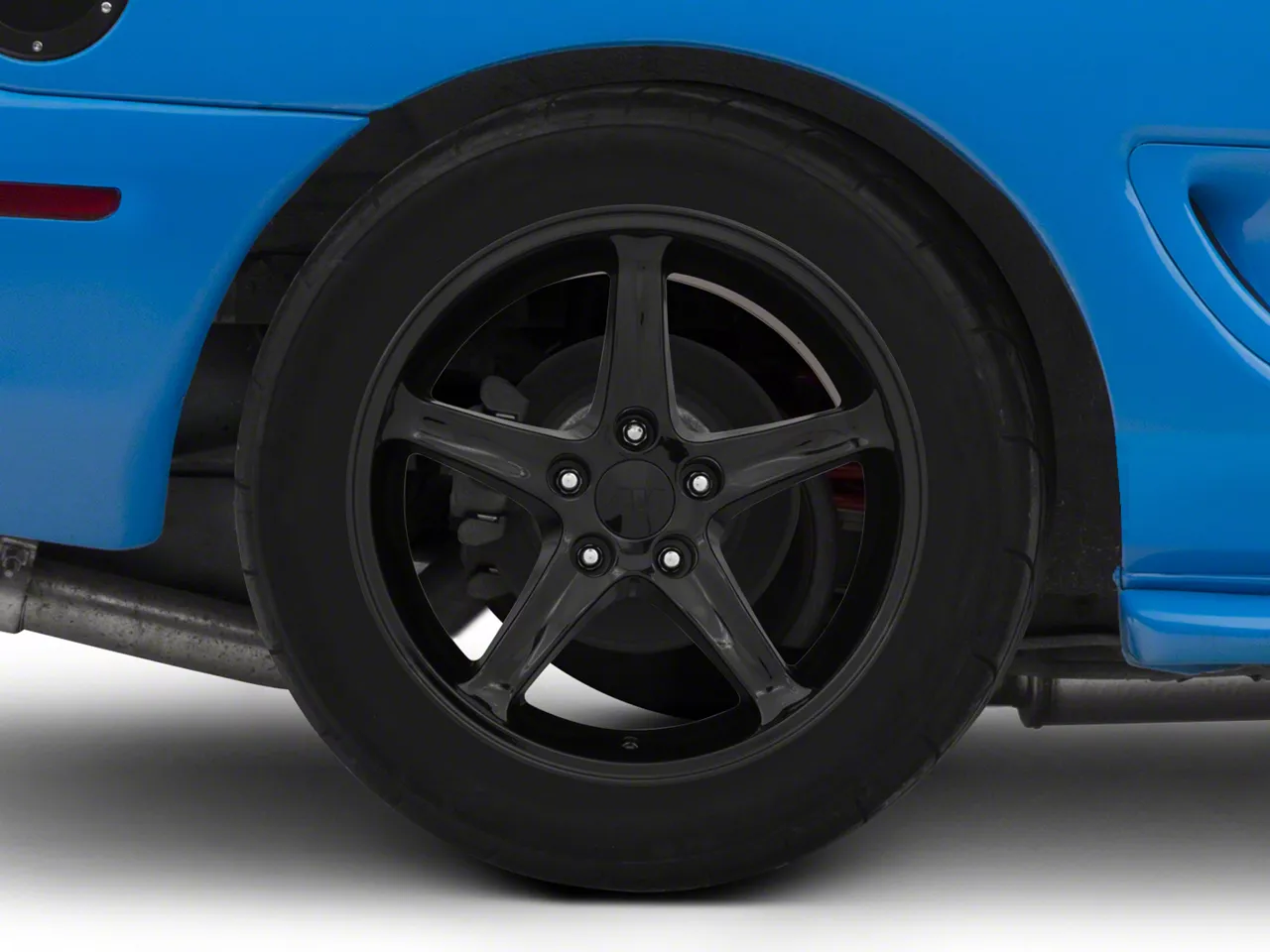 Application. This American Muscle Wheels 1995 Cobra R Style Gloss Black Wheel; Rear Only; 17x10.5 with a backspace of 6.853 Inch, 174.1mm and bolt pattern of 5 x 114.3mm (5 x 4.5-Inch) ensures impeccable alignment and unmatched driving stability. Specifically designed for 1994-1998 Mustang models, each wheel is sold individually.