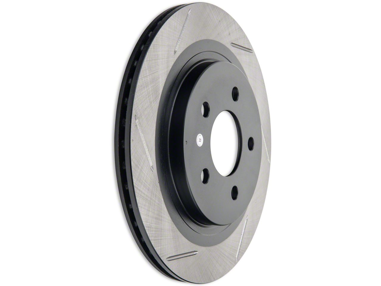 Upgraded Rotors for Strong Braking Action. Ready to stop your Mustang reliably even on a slush-laden winter road or in the midst of pounding rain, the high traction StopTech Slotted Rotors, Rear Pair outfit your 2005-2014 GT or V6 for successful braking in every situation, season, and weather. The vented design helps keep things cool even when you’re working the brakes hard, shedding heat before it can lead to “fade.” The slots keep the pad fresh and clean, while removing slippery substances from the rotor to ensure it offers high friction constantly.
