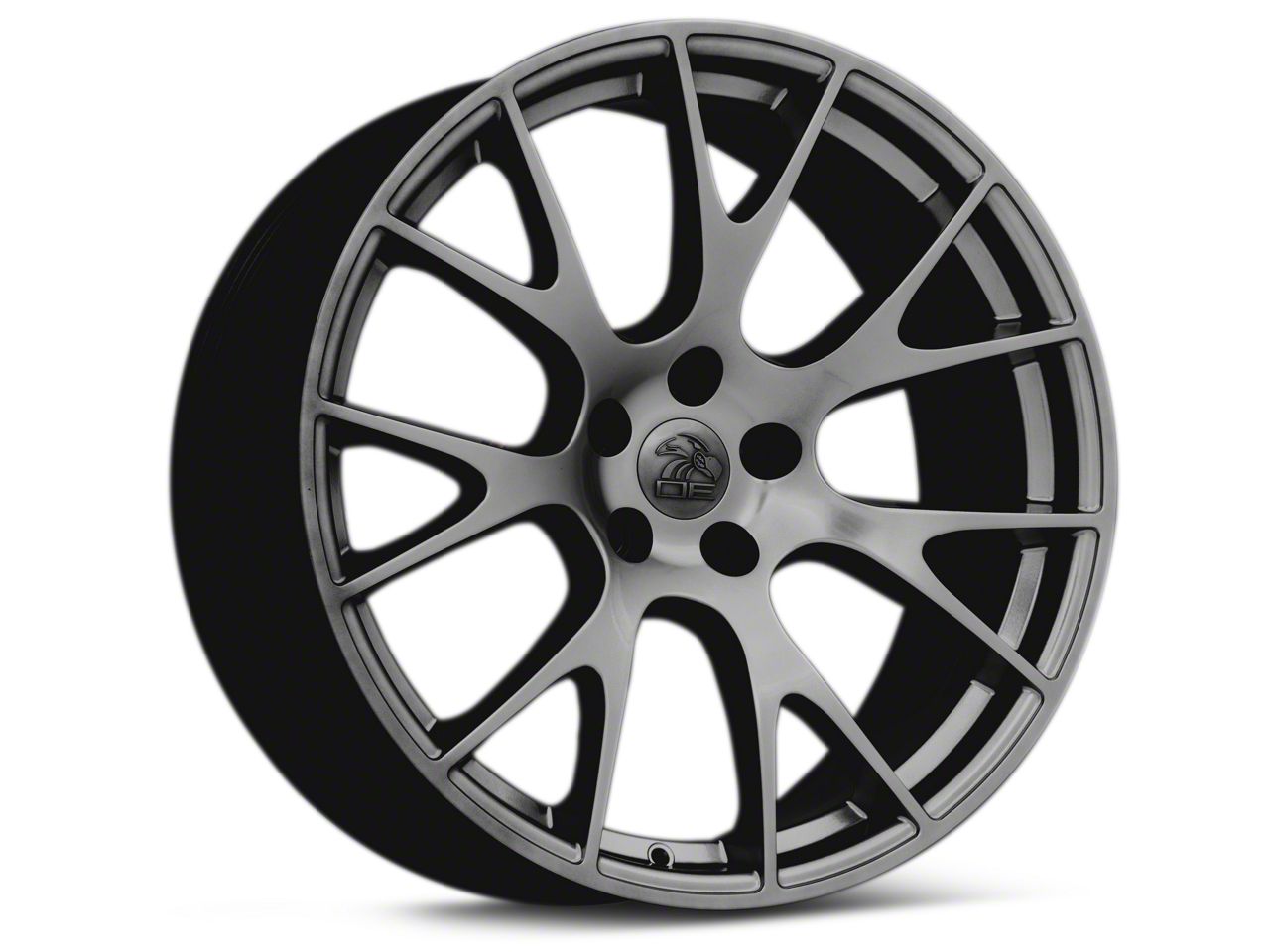 OE Wheels Hellcat Style Hyper Black Wheel; 20x9 The Hellcat wheel boasts a sophisticated aesthetic appeal that complements a variety of vehicle styles. Crafted by renowned brands, its design emphasizes a premium and robust nature, ensuring your vehicle stands out in any crowd.