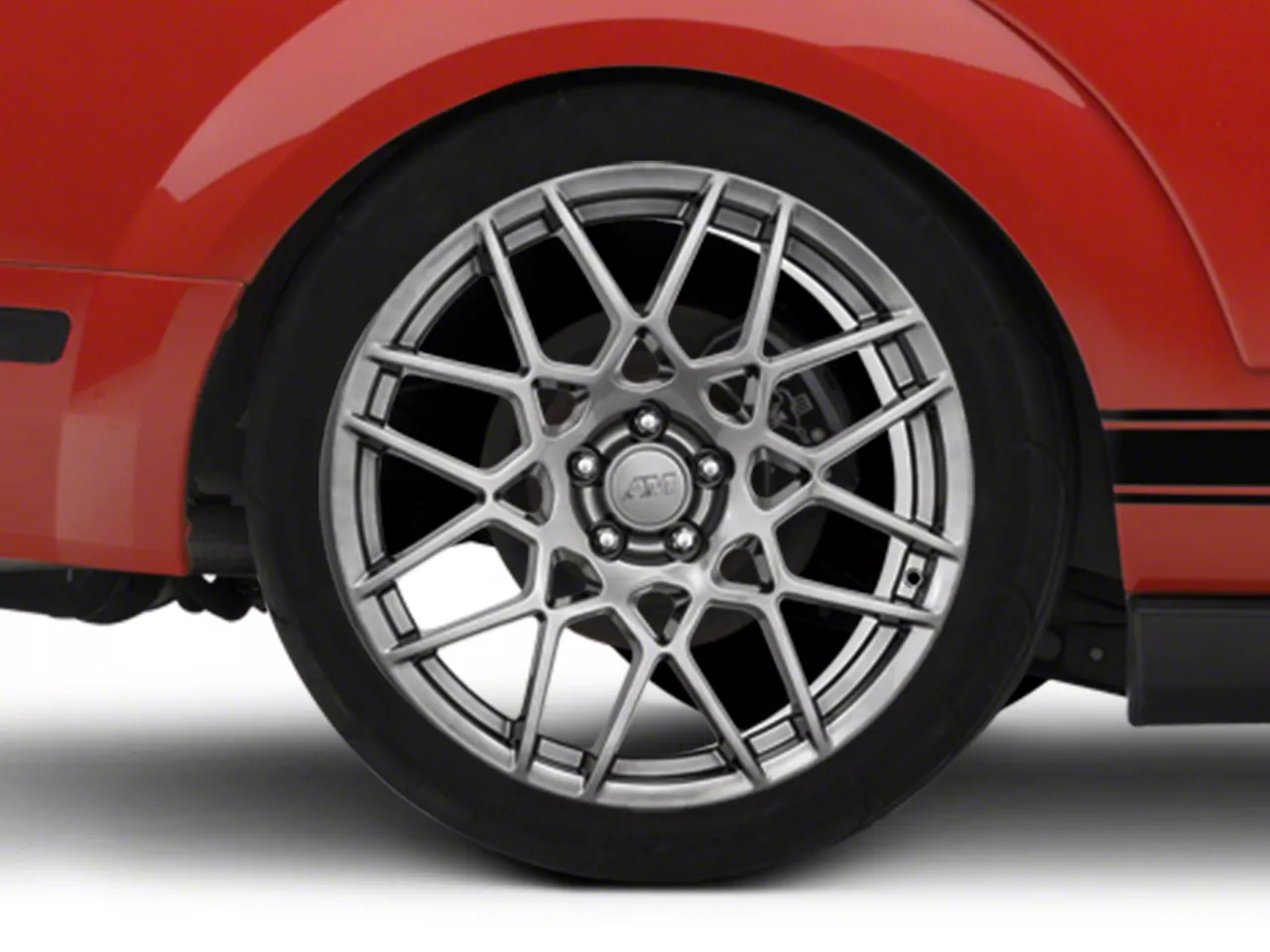American Muscle Wheels 2013 GT500 Style Hyper Dark Wheel; Rear Only; 20x10 exudes an unparalleled aesthetic appeal that perfectly complements a range of vehicle styles. The unique design crafted by American Muscle Wheels not only accentuates the visual appeal but also seamlessly aligns with contemporary vehicle aesthetics.