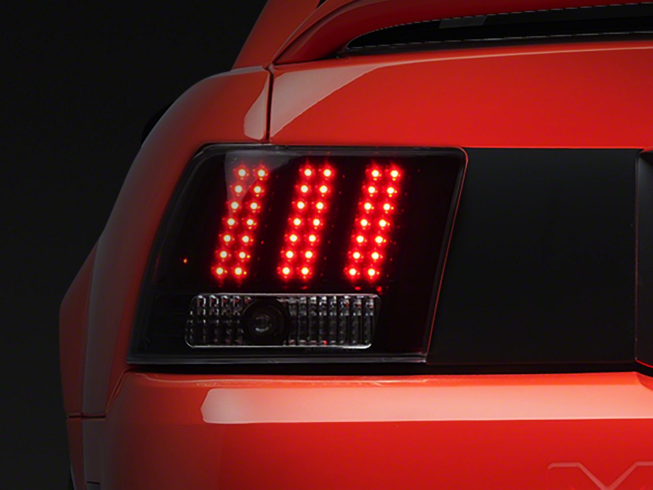 Modern Styling. Inspired by modern European LED styling, these Black Tail Lights feature three columns of bright red LED's set in a black housing to add sleek impressive styling and additional safety to your 1999 to 2004 New Edge Mustang.