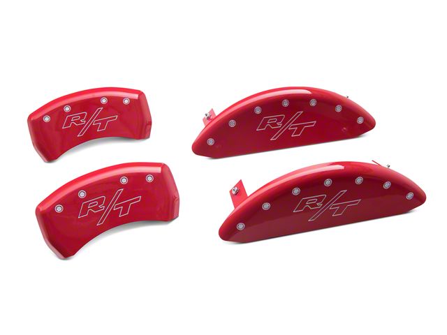 Resilient Build Quality. MGP Red Front & Rear Caliper Covers with Vintage Style R/T Logo are constructed from aircraft-grade 6061-T6 aluminum, for strength and corrosion-resistance. A strong powder-coat finish in bright red is then applied on the covers giving them their dynamic styling. Finally, a vintage style R/T logo and “bolts” are embossed onto the cover preventing premature fading.
