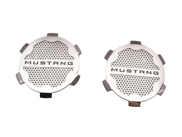 Customizes Interior. The polished Door Speaker Trim with Mustang Lettering is designed to customize your Mustang’s interior, while adding that classic Mustang style. Proudly made in the USA, this product is officially licensed by Ford Motor Company and is guaranteed to give your existing speakers a fresh and exciting look.