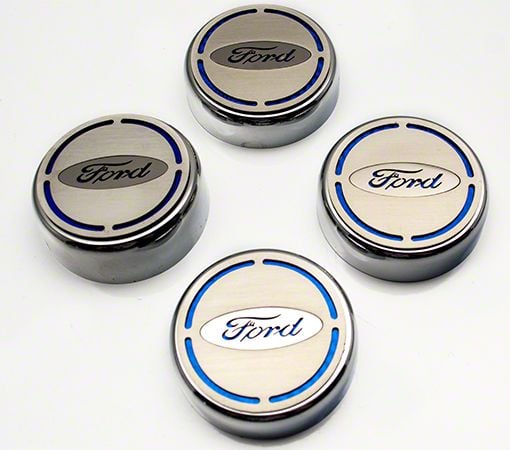 Get Show-Ready Engine Compartment. With these ACC Engine Cap Covers, you’re always ready to show off what’s in your Ford Mustang’s engine compartment. These covers are designed to help you dress up your engine bay by hiding unsightly and old factory fluid caps. Featuring the Ford Oval emblem, these 4-piece cap covers add a unique look and styling to your vehicle. Each set includes covers for oil, water, brake, and windshield washer fluid factory caps.
