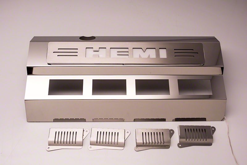 For Enhanced Styling. These ACC Illuminated Polished Fuel Rail and Coil Pack Covers are designed to significantly enhance the appearance of your current Dodge Challenger engine. These covers come in a kit, which includes a fuel rail, as well as a polished stainless steel base, featuring an illuminated HEMI logo and perforated stainless steel sides. All these will add a show-stopping style to your Challenger.