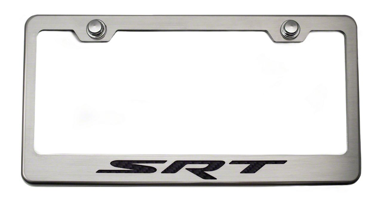 Adds Unique and Custom Style. Don’t let your drab-looking license plate ruin the appearance of your Dodge Challenger. Install this ACC License Plate Frame with SRT Logo to give your vehicle a custom style that will complement its overall look. It features a custom SRT lettering with different vinyl inlay colors from which to choose. The stainless steel finish is matched with chrome screw covers for a sleek and elegant look.