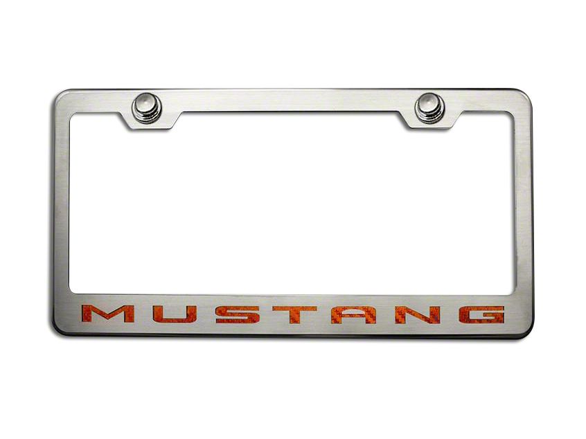 Unique License Plate Frame. Ditch your old license plate frame and replace it with this rad ACC Polished/Brushed License Plate Frame w/ Solid Bright Red 2010 Style Mustang Lettering. If you’re getting bored with the look of your car’s rear, you can style it up with this unique license plate frame. This product features a sleek stainless steel license plate frame that is inlayed with a solid bright red “MUSTANG” text in 2010 style.