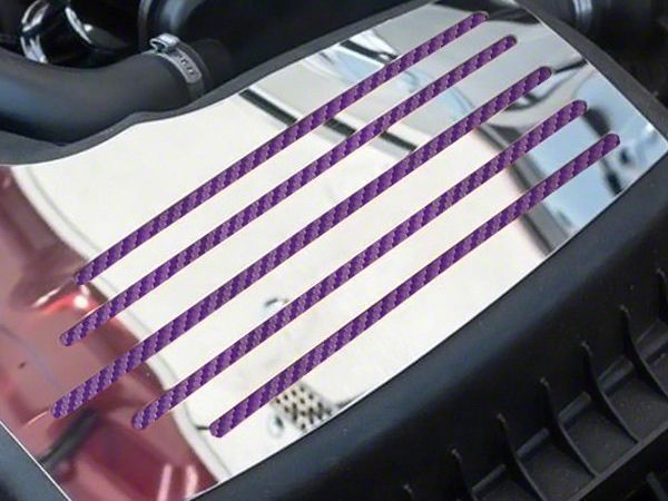 Application. The ACC Polished Factory Air Box Accent Plate with Purple Carbon Fiber Inlay can be used for the 2015-2023 Ford Mustang GT, Ecoboost, and V6.