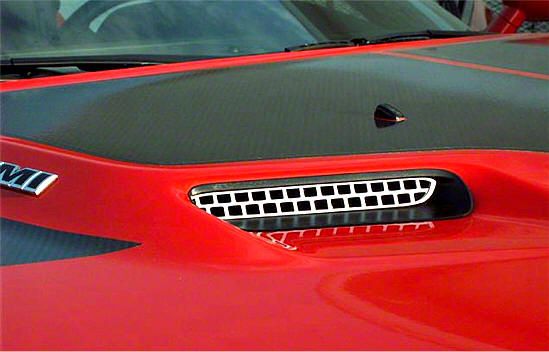 A Fierce Upgrade. Add a more aggressive and powerful look to your Dodge Challenger with a few well-placed accents. These Polished Overlay Style Hood Scoop Grilles from ACC are perfect for the job, adding an eye-catching 3D mesh aesthetic to your Challenger's hood. Give your Muscle Car a tougher look at an affordable price.