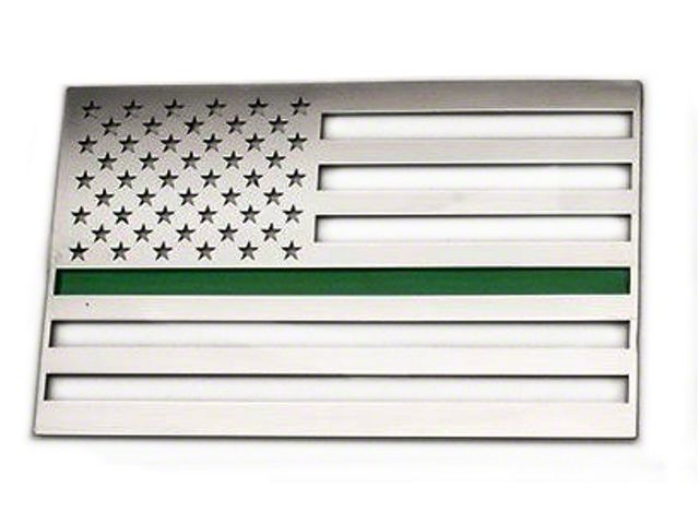 Adds a Stamp of American Pride on Mustang. Show your patriotic pride on your Ford Mustang, regardless of what model it is, with the ACC Stainless Steel American Flag Emblem that's Polished with Thin Green Line. Representing the Stars and Stripes, this emblem features a green line in the middle—just directly underneath the rectangle of stars—to show support to service personnel. You can choose between the 1-piece unit, which goes on just the driver’s side; and the 2-piece unit, which applies to both driver and front passenger sides.