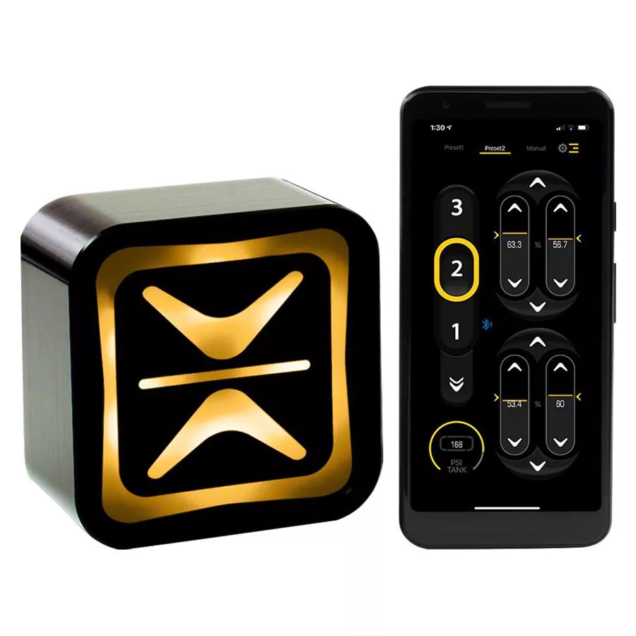Innovative Functionality. With its advanced features, the AccuAir Suspension E-Level+ ECU Upgrade Height+ Air Suspension Management allows you to program three different heights to suit your driving preferences and needs. The integrated compressor status indicator ensures you always have real-time information about your suspension's functionality, while the height percentage display enables precise adjustments for the perfect ride. Effortlessly control your air suspension with the convenience of Bluetooth connectivity and an intuitive mobile app, providing seamless operation and customization at your fingertips.
