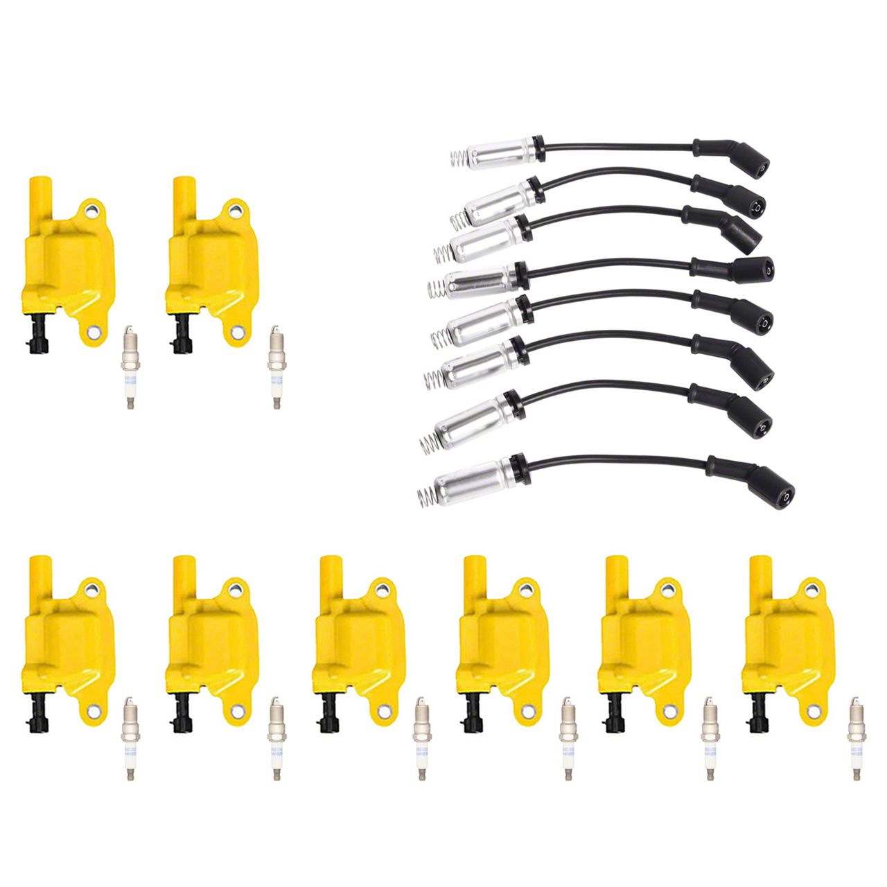 High-Performance Ignition System. This Ignition Coil Set with Spark Plugs and Wires is designed to replace your factory ignition system while delivering 10-15% more energy than OEM coil packs. By increasing voltage output and reducing misfires, this kit ensures a more efficient and powerful combustion process, leading to better throttle response and overall engine performance.