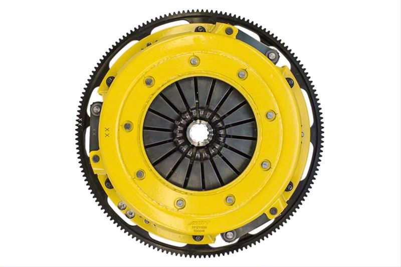 Description. T3S-F02 street, twin disc kit offers twice the number of disc surfaces for better wear, heat capacity and long life compared to single disc kits. These kits use a proprietary Positive Lift Floater System design, which results in quiet operation with no floater rattle and no posts to wear. ACT twin disc kits endure an exclusive four-stage, heat-treating process on all diaphragms. The ACT twin disc features the ability to adjust for disc wear and provides equal disengagement for discs. The ACT Performance street rigid-hub discs feature premium organic materials with high copper content for better heat transfer and steel-backed lining for greater burst strength and durability. The chrome-moly hub is heat-treated for strength and durability. Rivet design and materials are carefully selected for maximum strength. All ACT twin disc kits include a CNC-machined and dynamically balanced flywheel to ensure trouble-free installation and operation. ACT twin disc kits include a pressure plate, two discs, a floater, flywheel and alignment tool. Some kits may included a pilot bearing and release bearing.