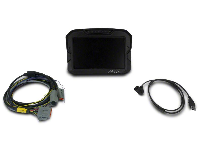 Large LED Display. With AEM Electronics' CD-7 Digital CAN Input Racing Dash Display, the interior of your 1979-2024 Mustang will never be the same again. The display utilizes extra bright light and a high contrast display to ensure it is readable in all conditions, whether it is dark and snowy or brilliantly bright outside. The inputs use CAN bus connections and the display has a myriad of programmable features, including the CAN connections, warning icons, various pages, and LEDs. With 7 LEDs that indicate RPM and shift and 2 easy-to-use buttons, this display is the definition of user-friendly.