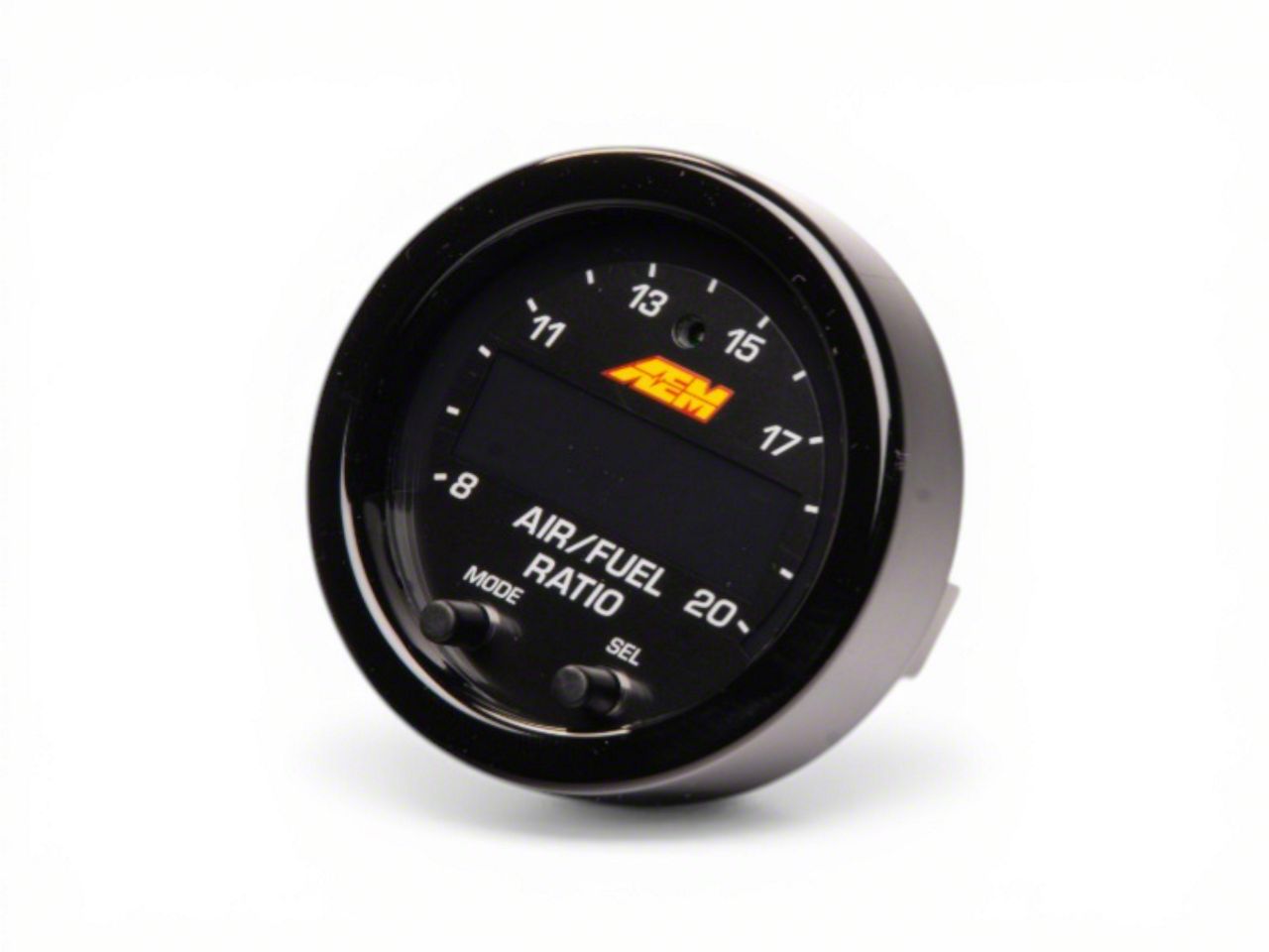 Sleek Black Face. This innovative gauge features a round shape with a sleek black face color and matching black bezel, elevating your dashboard's aesthetics. With a digital gauge style and a broad 8.0:1-20:1 air/fuel ratio range, it offers precise monitoring for a finely tuned drive.