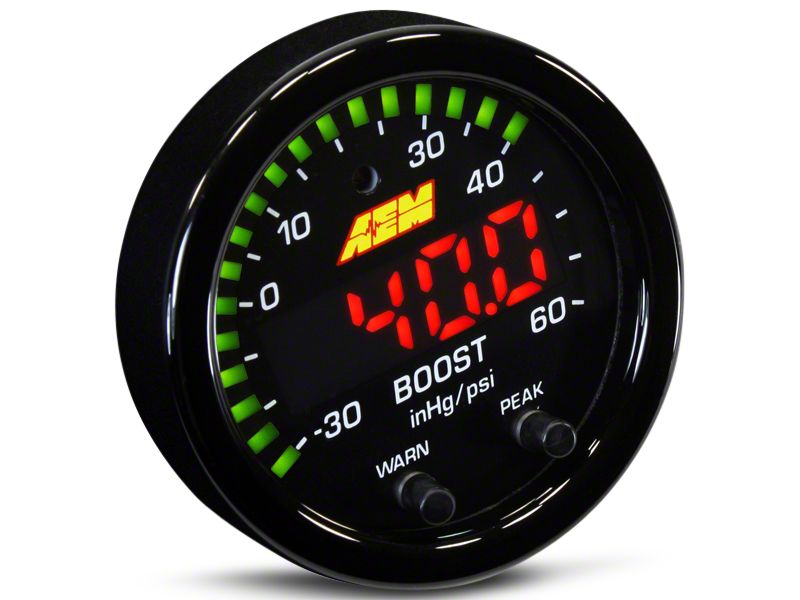 Top-of-the-Line Interface. True to AEM’s high-tech tradition, this electrical boost pressure gauge is engineered with a programmable peak/recall and is AEMnet CANbus enabled to allow you to conveniently hook it up with an Engine Management System (EMS) and standard data loggers.