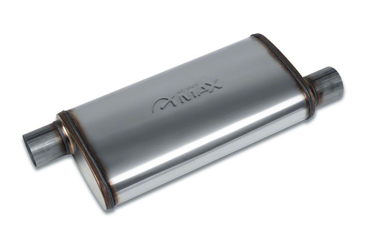 Performance and Sound in One Package. The Street Series Street Max Muffler delivers aggressive performance with a refined exhaust note that enhances both power and driving experience. Designed to reduce backpressure while maintaining a deep, non-intrusive tone, this muffler is a strong upgrade for any custom or performance build.