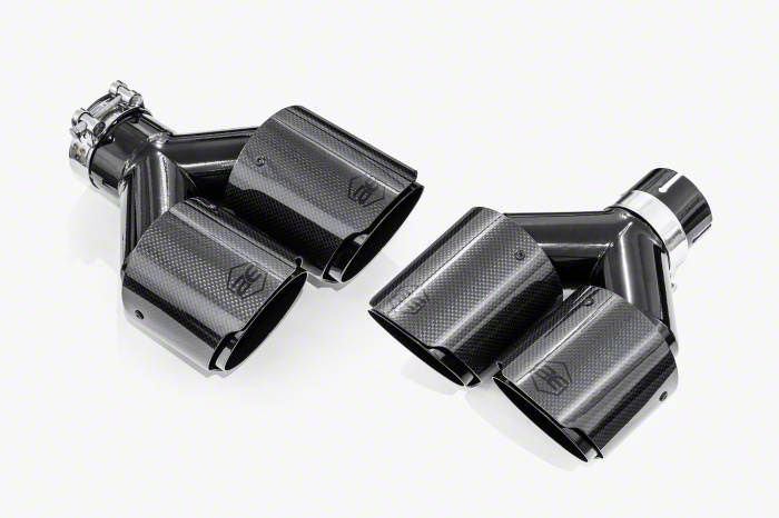 Dual Angle Cut Exhaust Tips. The Aero Exhaust Dual Angle Cut Exhaust Tips feature a sleek and aggressive design, with dual 4-inch carbon fiber tips that add a modern touch to your vehicle. These tips are designed to enhance the aesthetic appeal of your exhaust system while providing a performance-oriented look.
