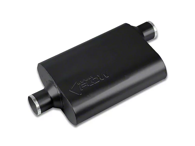 Description. Street-Series Street Flow Mufflers provide that deep, classic exhaust note everyone desires. These mufflers feature a quality aluminized construction and come in a one, two, or three-chamber design that perfectly pairs with your sound output needs. Available in various inlet/outlet diameters and configurations and a round casing version.