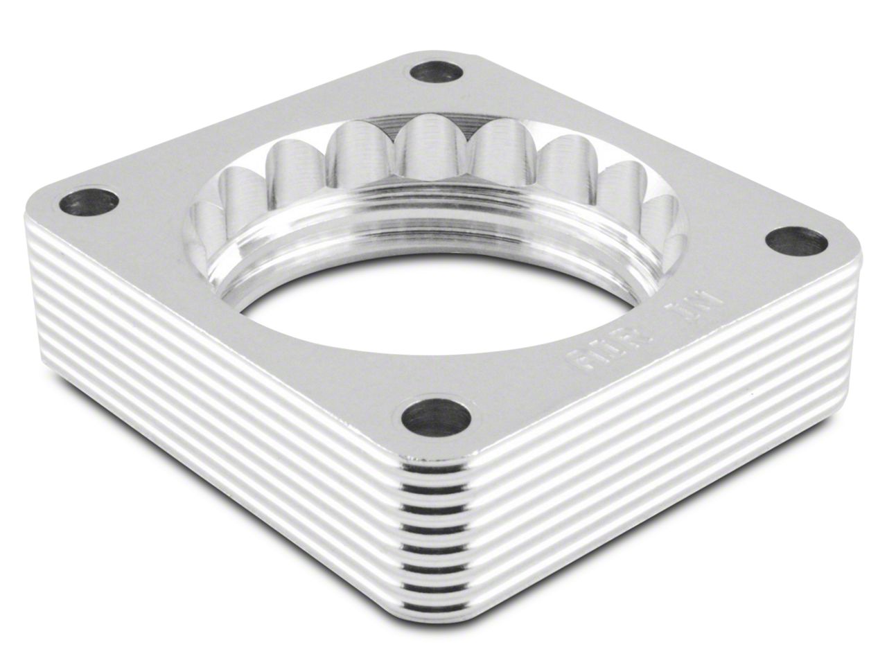 Simple is Best. Sometimes, the simple things are the best. The simplest way to add a measure of performance, response, and efficency to your V6 Mustang is this aFe Silver Bullet Throttle Body Spacer. It introduces a hint of turbulence to the intake flow just in front of the throttle-body, thus increasing airflow with no further modifications. And because aFe is good at this sort of thing, their CNC-machined helix design doesn't even have the "whistling" problems common in other spacers. This is a quality piece that can add greatly to your enjoyment of your V6 'Stang at a very low price.