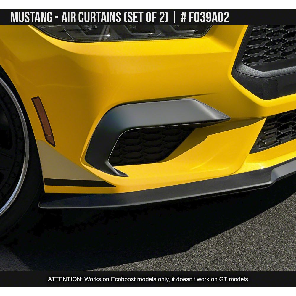 Application. The Air Design Front Air Curtains fit 2024-2026 Mustang EcoBoost models.