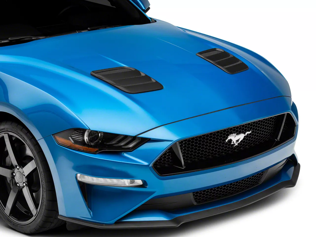 Application. The Air Design Hood Vents; Satin Black fit all 2018-2023 Ford Mustang GT and EcoBoost models.