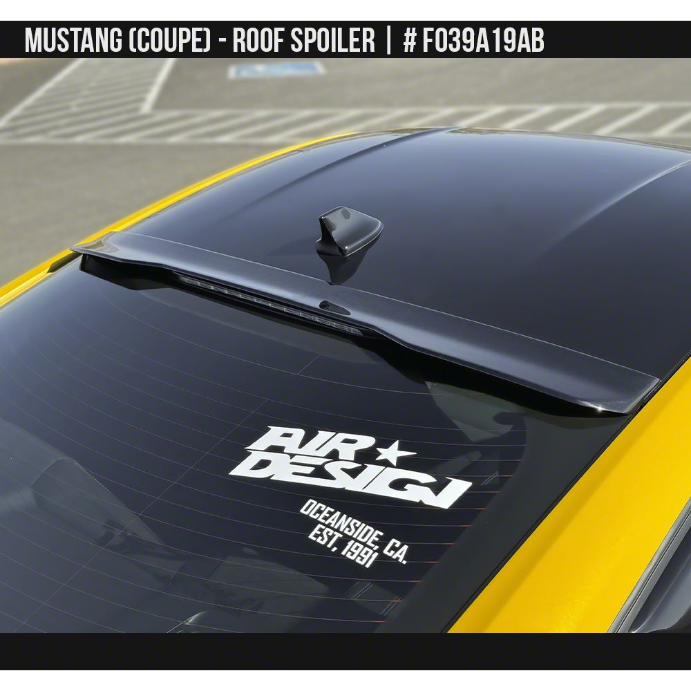 Race-Inspired Looking Roof Spoiler. The Air Design Roof Spoiler is designed to enhance the aerodynamics and appearance of your Mustang. Featuring a sleek, race-inspired look, this spoiler is an ideal upgrade for those seeking both style and performance.