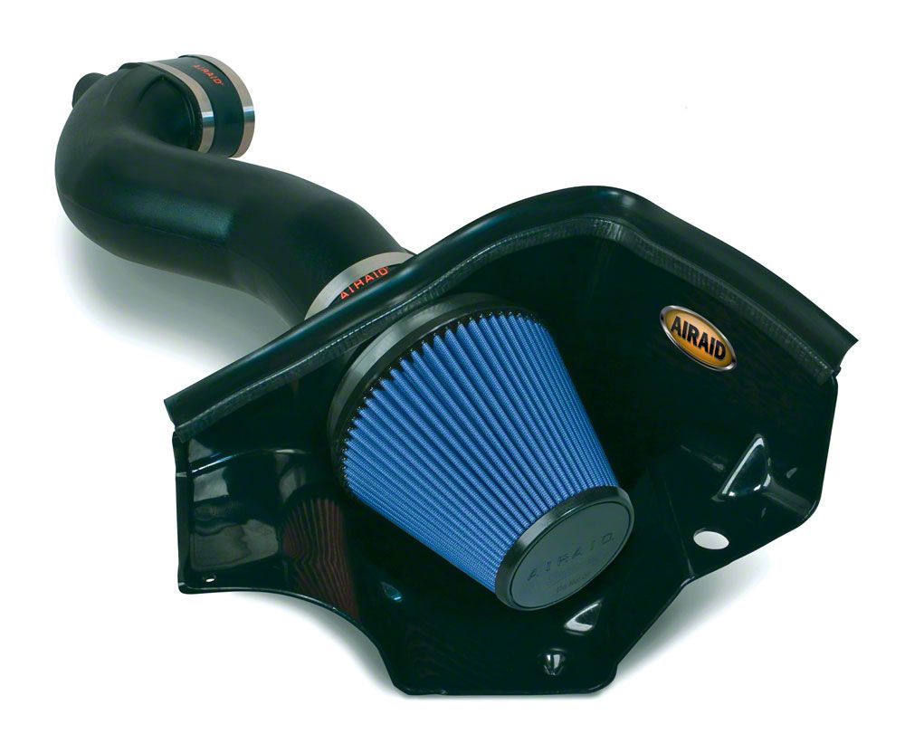 A Boost in Performance. The Airaid MXP Series Cold Air Intake with Blue SynthaMax Dry Filter uses a non-woven synthetic air filter for superior air flow. It also has a durable intake tube that works with the filter for smoother operations. Install this cold air intake system on your Ford Mustang GT, and watch your horsepower and torque improve considerably.