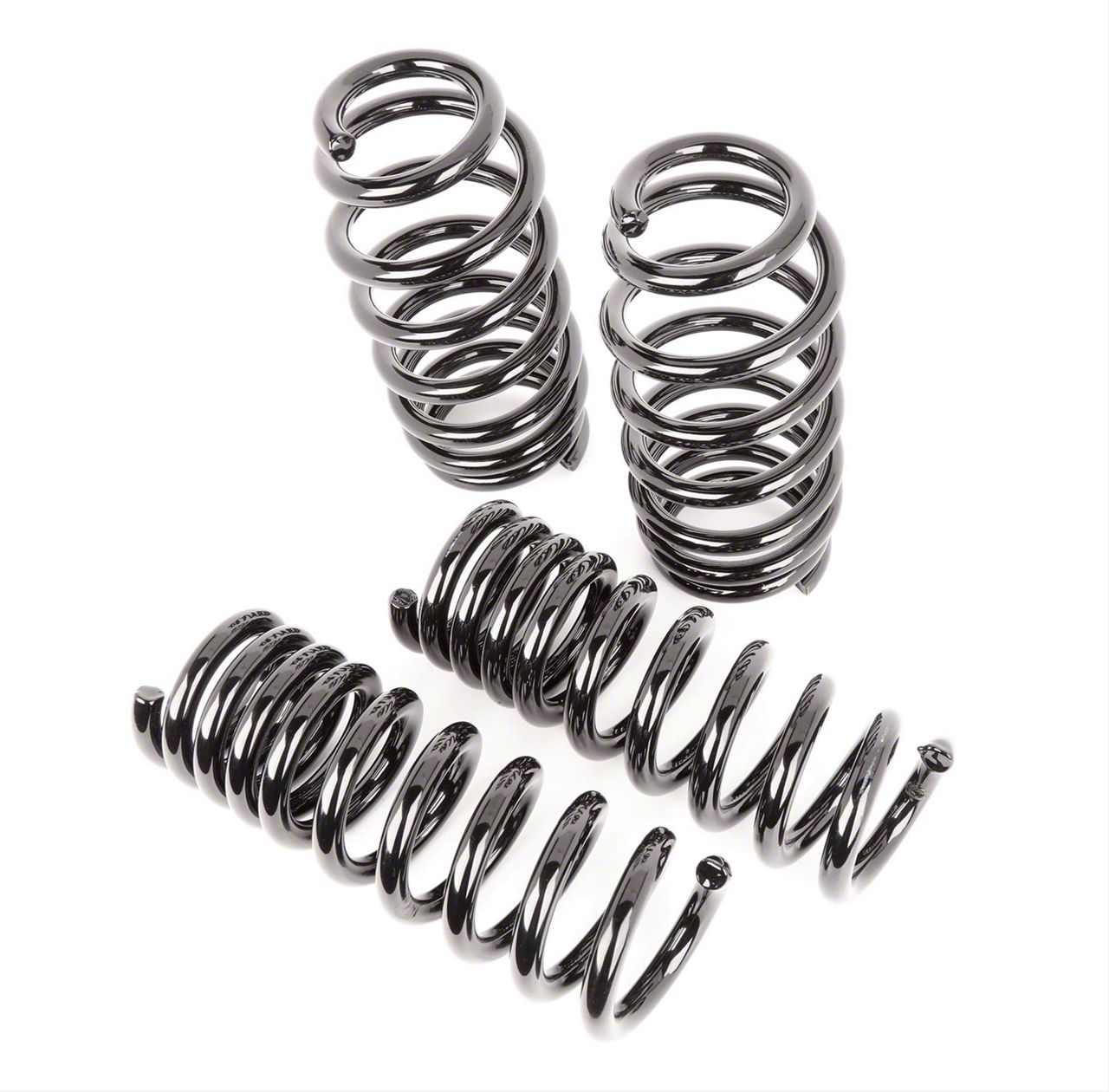 Clears Stock and Aftermarket Wheels and Tires. These lowering springs were engineered to be compatible with your stock size wheels and tires, as well as AmericanMuscle’s pre-configured wheel and tire combo kits (specific to your generation), to assure proper clearance with no rubbing issues.