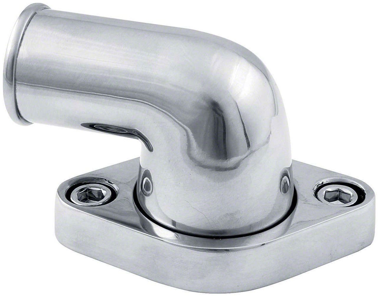 Construction and Appearance. Crafted from polished aluminum, this water neck offers durability and a clean, performance-style look under the hood. The two-piece design with a precision-machined O-ring seal ensures a leak-free connection while allowing for easy directional adjustments during installation or maintenance.