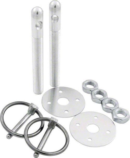 High-Quality Hood Security. The Allstar Performance Aluminum Hood Pin Kit with 3/8-Inch Pins; Silver is designed to provide reliable and secure fastening for vehicle hoods. It helps ensure that the hood stays firmly closed during high-performance driving or rough conditions, enhancing safety and vehicle integrity.