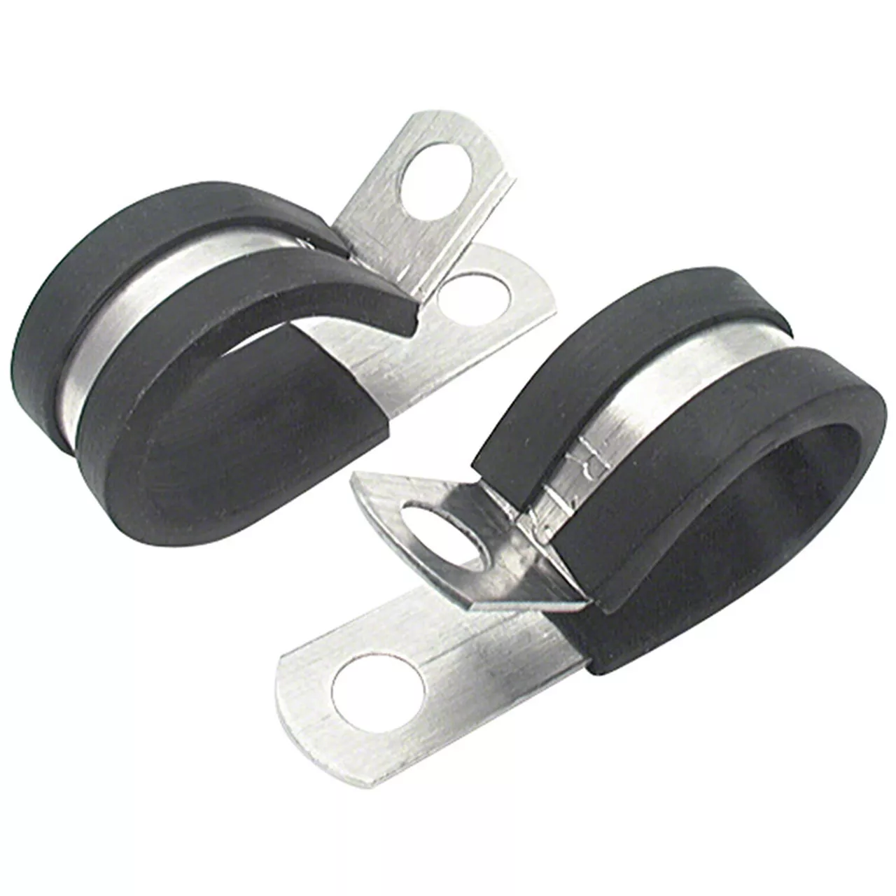 Aluminum clamps have a protective neoprene cushion to prevent abrasion and a 1/4" mounting hole to secure electrical wiring, hoses or cables to a panel or frame.