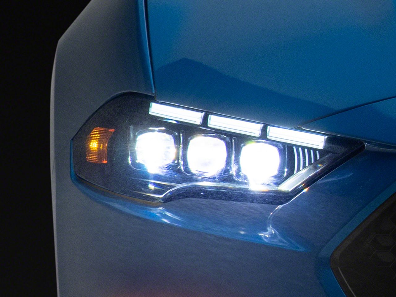 Advanced Lighting Solution. The AlphaRex MK II NOVA-Series LED Projector Headlights; Black Housing; Clear Lens deliver exceptional illumination and style enhancements for modern Mustangs. These headlights combine powerful LED projector technology and customizable lighting modes to improve visibility and vehicle aesthetics while driving. They offer a dynamic lighting experience with sequential turn signals and activation light sequences for both safety and showmanship.