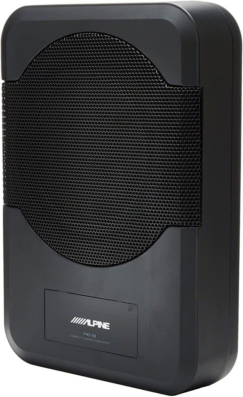 Low-Profile Sound Upgrade. Get more bass and listen to your favorite road trip songs with this Alpine Compact 8-Inch Powered Subwoofer System. Sporting a compact well-built structure, it is the perfect road companion as it doesn't take up too much space in your vehicle while also being able to provide reliable performance everyday even after a bumpy drive through road or dirt terrain.