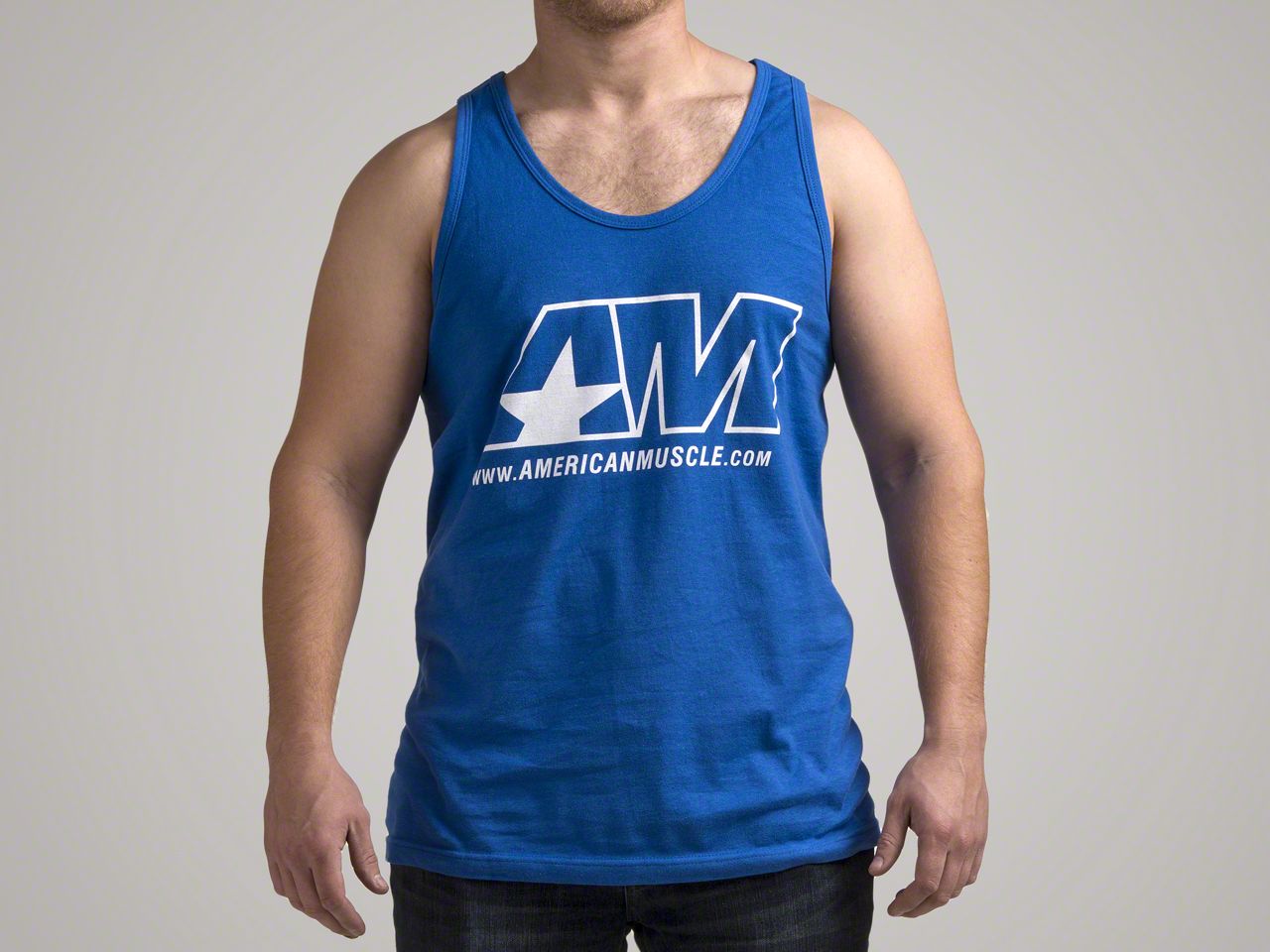 AmericanMuscle Icon. An AM Tank is the perfect piece of apparel to show off your muscles whether you are working on your car or working out at the gym. This great looking blue Tank features a large AmericanMuscle Icon logo across the chest with a small AmericanMuscle logo in white on the back.