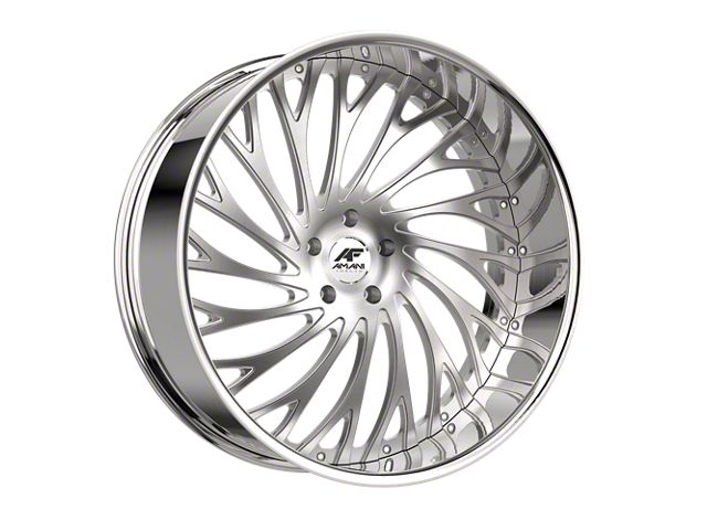 This 28x10 Amani Vamos-R Brush Center with Chrome Lip Wheel; Rear Only; 28x10; 5mm Offset is completed in a high-quality brushed finish with a chrome lip to make your wheel the envy of everyone. For added looks and durability, the wheels has a durable clear coat that withstand the rigors of daily driving.