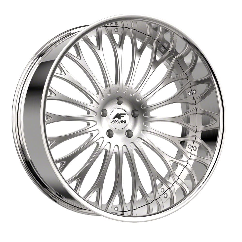This 22x9 Amani Napoliano Brush Center with Chrome Lip Wheel; 22x9; 15mm Offset is completed in a high-quality brushed finish with a chrome lip to make your wheel the envy of everyone. For added looks and durability, the wheels has a durable clear coat that withstand the rigors of daily driving.