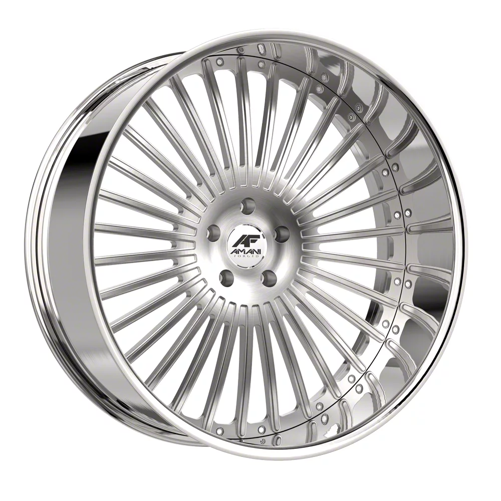 This 22x10 Amani R.E.A.L. Brush Center with Chrome Lip Wheel; Rear Only; 22x10; 20mm Offset is completed in a high-quality brushed finish with a chrome lip to make your wheel the envy of everyone. For added looks and durability, the wheels has a durable clear coat that withstand the rigors of daily driving.