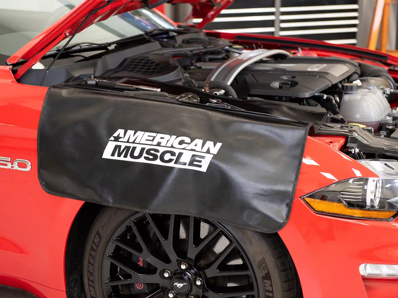 Superior Protection. Looking for a fender cover to protect against chemical spills or damage that can happen when working under the hood? The AmericanMuscle Fender Cover is the perfect choice to defend your handsome paint job. Officially licensed by Ford Motor Company, this clever cover is a must for any garage.