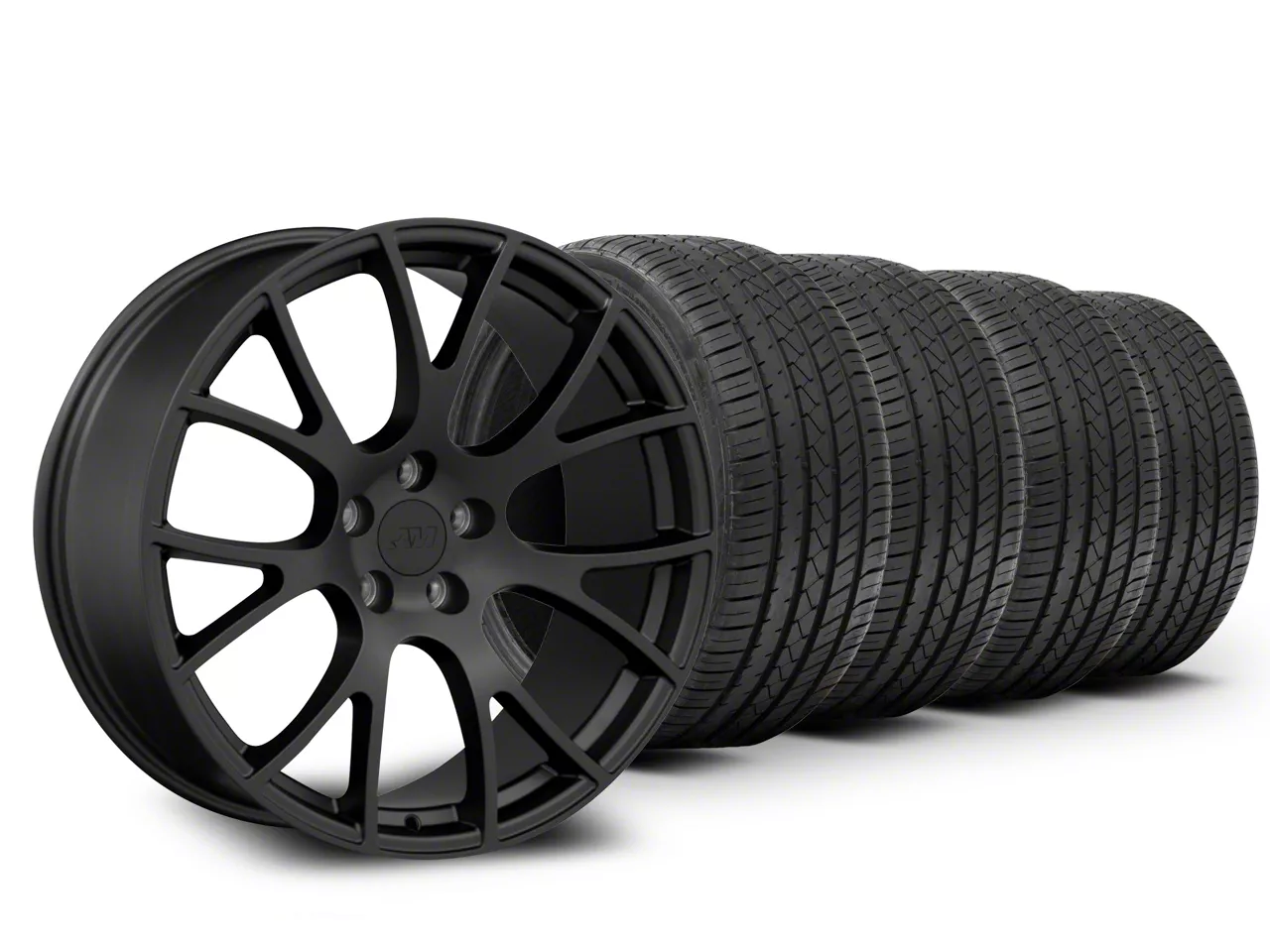 Mounted and Balanced Wheel and Tire Kit. This wheel and tire combo kit features (4) 20x9 Hellcat Style Satin Black Wheels and (4) Lionhart LH-Five Ultra High Performance All-Season 275/40R20 tires that have been put together into an easy to buy kit that arrives to your door already mounted and balanced ready to be installed on your vehicle.