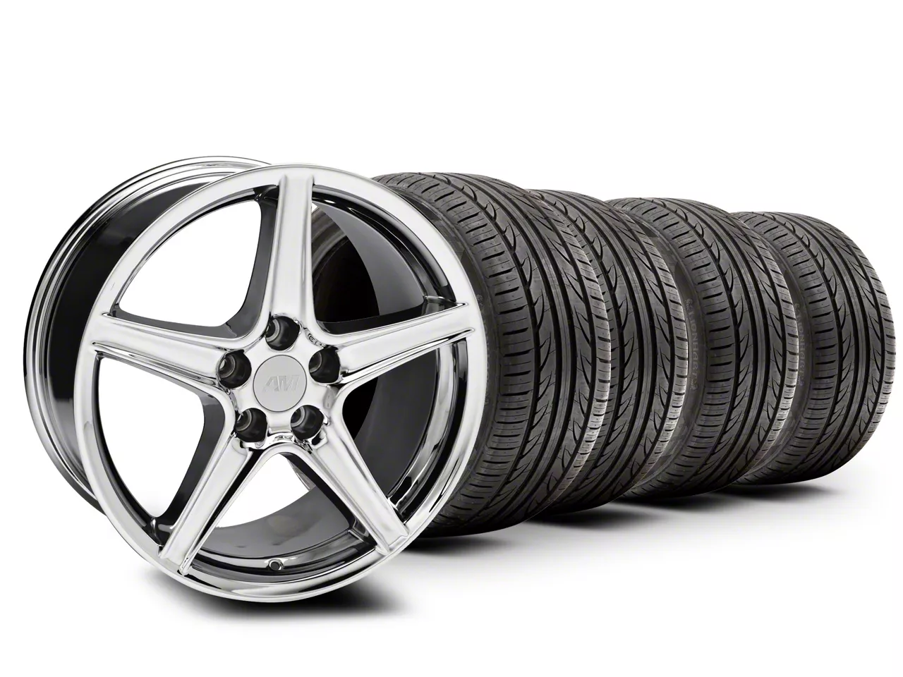 Mounted and Balanced Wheel and Tire Kit. This wheel and tire combo kit features (4) 18x9 Saleen Style Chrome Wheels and (4) Lionhart All-Season LH-503 255/45R18 tires that have been put together into an easy to buy kit that arrives to your door already mounted and balanced ready to be installed on your vehicle.