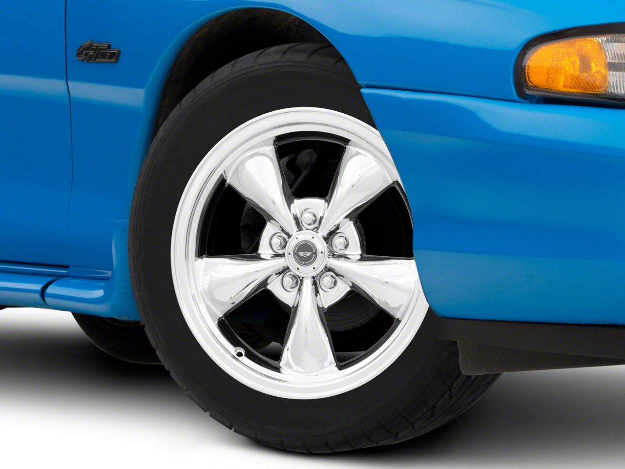 Application. This American Racing TORQ THRUST M Chrome Wheel; 17x8 with a backspace of 5.682 Inch, 144.4mm; and bolt pattern of 5 x 114.3mm (5 x 4.5-Inch) contributes to impeccable alignment and driving stability. Designed to fit 1994-1998 Mustang models, sold individually.