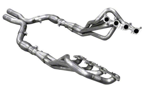 Bottle-Neck Eliminator Full System Construction. Designed to eliminate factory exhaust restrictions, the American Racing Headers 1-7/8 x 3-Inch Catted Long Tube Headers with X-Pipe; Bottle-Neck Eliminator replaces the entire restrictive section with smooth, mandrel-bent tubing. Manufactured from premium materials for long-term durability, the American Racing Headers 1-7/8 x 3-Inch Catted Long Tube Headers with X-Pipe; Bottle-Neck Eliminator deliver race-inspired performance with a precise, direct-fit design for 2018–2022 Mustang GT builds.