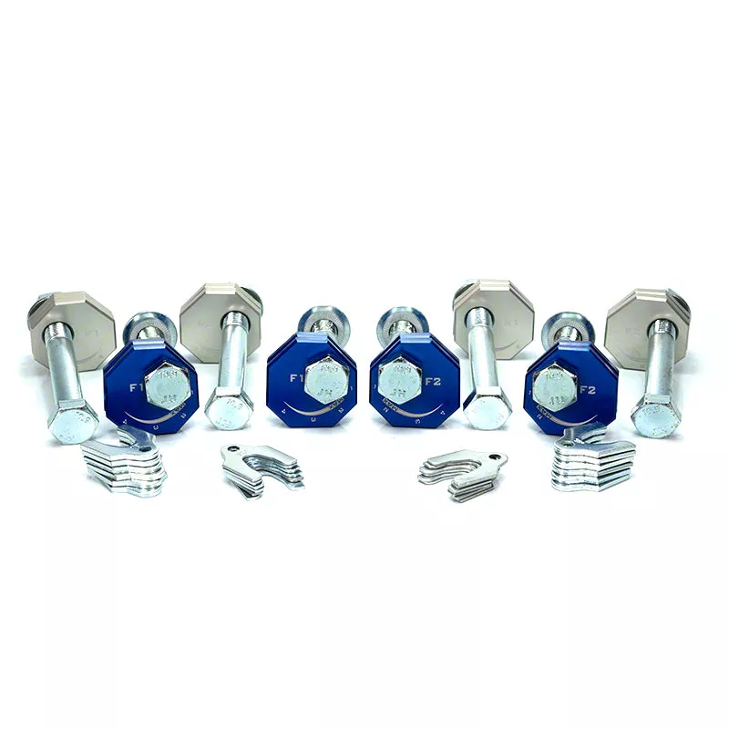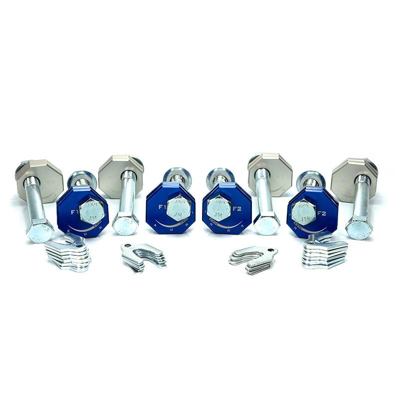 Precision Camber Control. The AMT Motorsport Adjustable Camber Kit with Upper Control Arm Studs (Blue) is engineered for enthusiasts demanding maximum alignment versatility without the hassle of swapping plates. This kit enables 10 levels of camber adjustment, making it ideal for track use or frequent alignment changes on your Corvette C8.