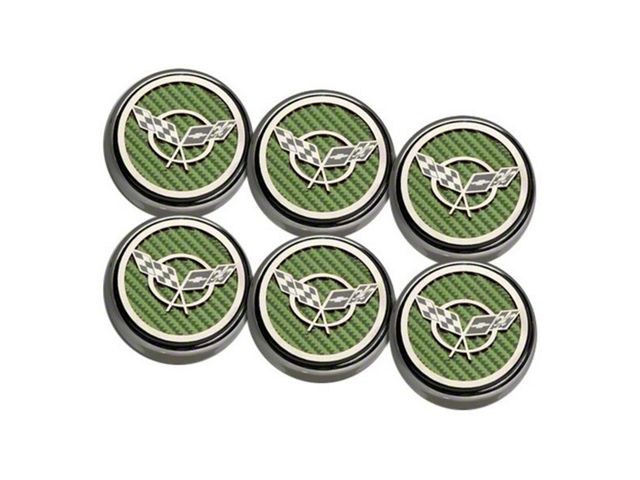 Description. Dress up your C5 engine bay with our Genuine GM Licensed Corvette Crossed Flags 6-Piece Engine Fluid Cap Covers. These chrome caps feature a brushed stainless steel laser-cut C5 Crossed Flags Emblem top plate and your choice of vinyl color inlay. Easily installs over your factory fluid caps. This set includes covers for your Oil, Water, Brake, Power Steering, Windshield Washer and Clutch factory fluid caps.