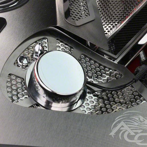 Application. The Perforated Shock Tower Cover Inserts with Chrome Cap fits 2020-2026 Corvette C8 Coupe models.