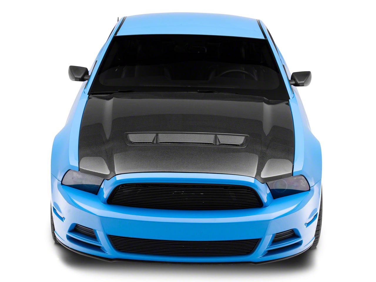 Boosts Aerodynamic Performance with Lightweight Manufacture. Even with gobs of power and firm suspensions, the Ford Mustang can still improve on its ability to accelerate with the Anderson Composites Type-GT Hood - Carbon Fiber. The reason is its carbon fiber construction, which makes it lighter than your metal-based stock hood.