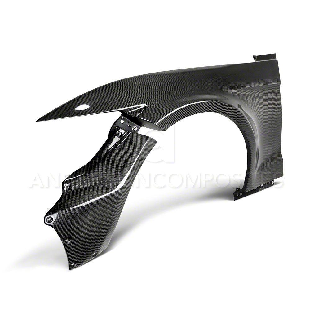 Helps Enhance Aerodynamic Performance. The Roush fascia kit on your sixth-gen Ford Mustang already makes the vehicle drive faster against the air and wind. However, the Anderson Composites Type-JTP Wide Fender Flares - Carbon Fiber takes it to another level with a lightweight carbon-fiber manufacture that attaches to both the front and rear.